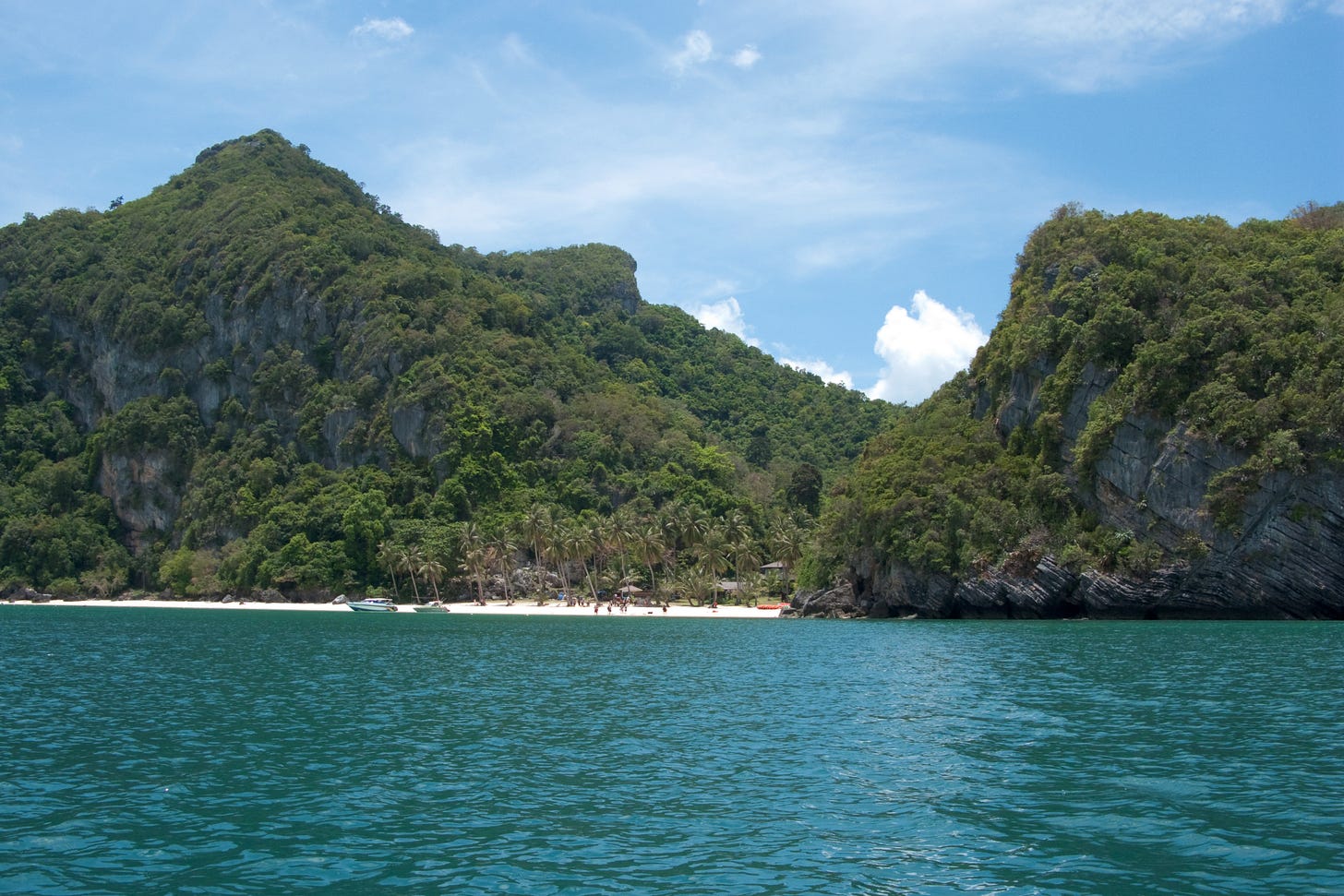 Finally, she’s done. Our little motorboat is lowered into the water and zooms towards the island, leaving me to watch it, chewing my nails. After an eternity, it comes back and lets me jump on board.